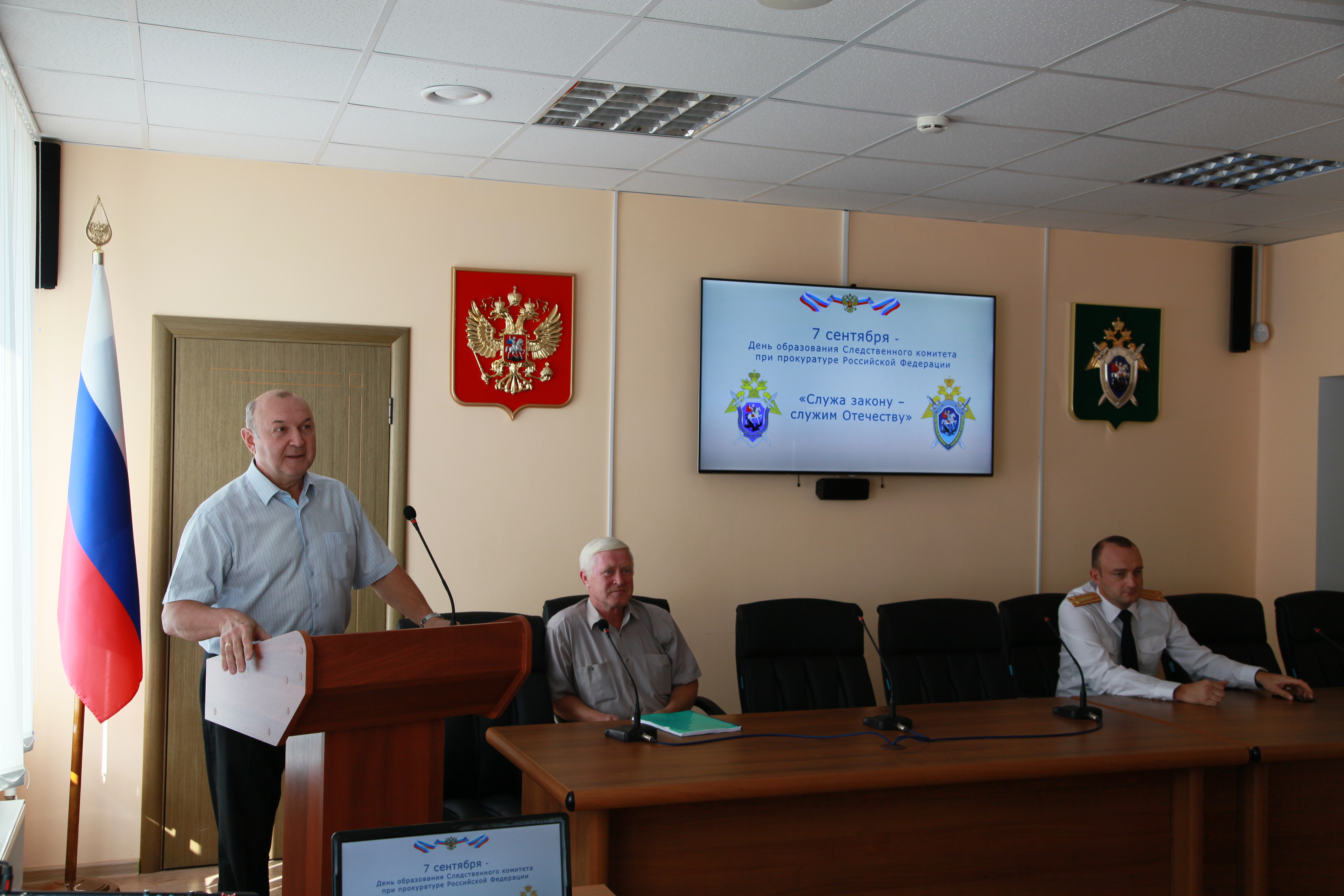 7 сентября в Следственном управлении СК России по Тамбовской области по приглашению начальника управления генерал-майора юстиции Александра Полшакова состоялась очередная, теперь уже традиционная творческая встреча членов Союза писателей России с сотрудниками и руководящим составом управления. Председатель региональной писательской организации Юрий Мещеряков представил аудитории автора исторических произведений, краеведа и почётного гражданина Тамбовского района Сергея Кочукова.