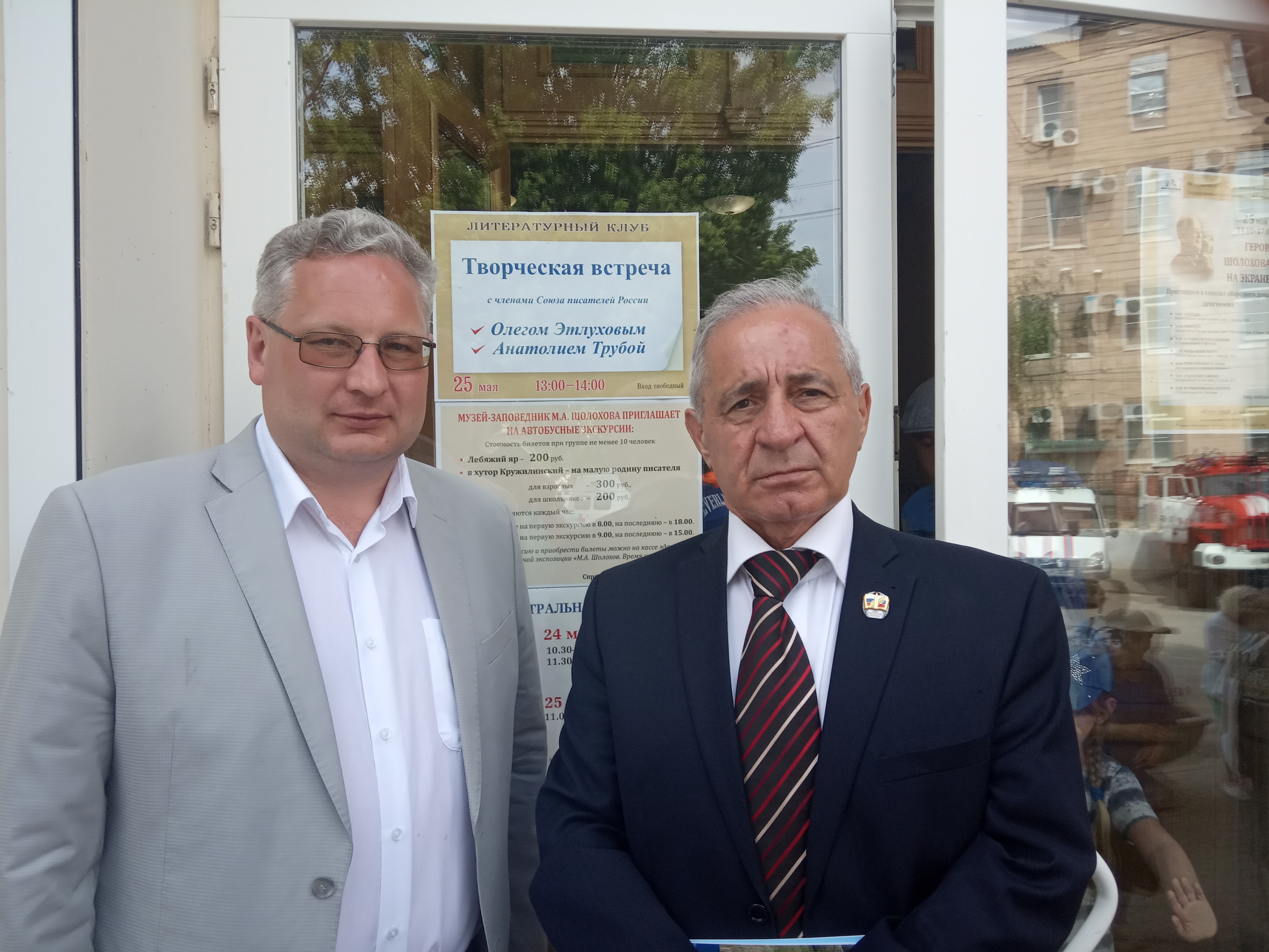 28 мая прошло очередное заседание секретариата Союза писателей России. Вынесена благодарность писателям Анатолию Трубе и Олегу Элтухову за активную работу в День славянской письменности и культуры в Вёшенской.