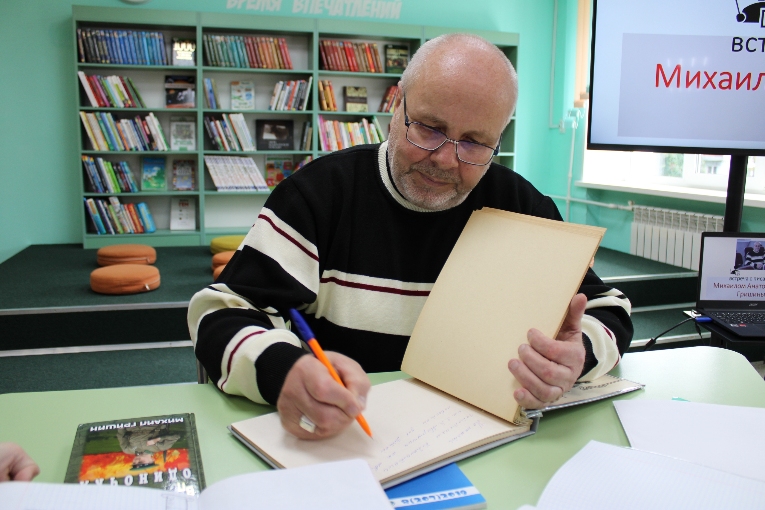Гости встречи задали писателю вопросы о творческих планах и о том, как рождаются книги. Михаил Анатольевич прочитал слушателям фрагмент новой повести о приключениях Витьки и его друзей. Подарком стало премьерное чтение свежего рассказа «Совиная благодарность». Михаил Анатольевич подарил библиотеке несколько собственных книг с автографом. Тепло и глубина прозвучавших строк надолго останутся в памяти читателей.