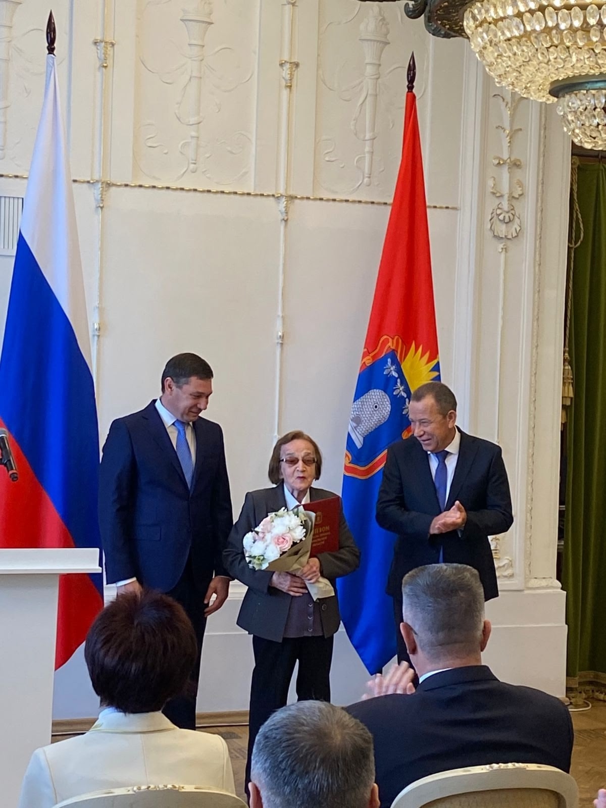 27 сентября наша коллега, легендарный тамбовский поэт Валентина Тихоновна Дорожкина, бессменно возглавляющая «Тропинку» на протяжении 40 лет, получила высокую награду лично из рук Главы Тамбовской области Евгения Первышова на торжественной церемонии во дворце Асеева.