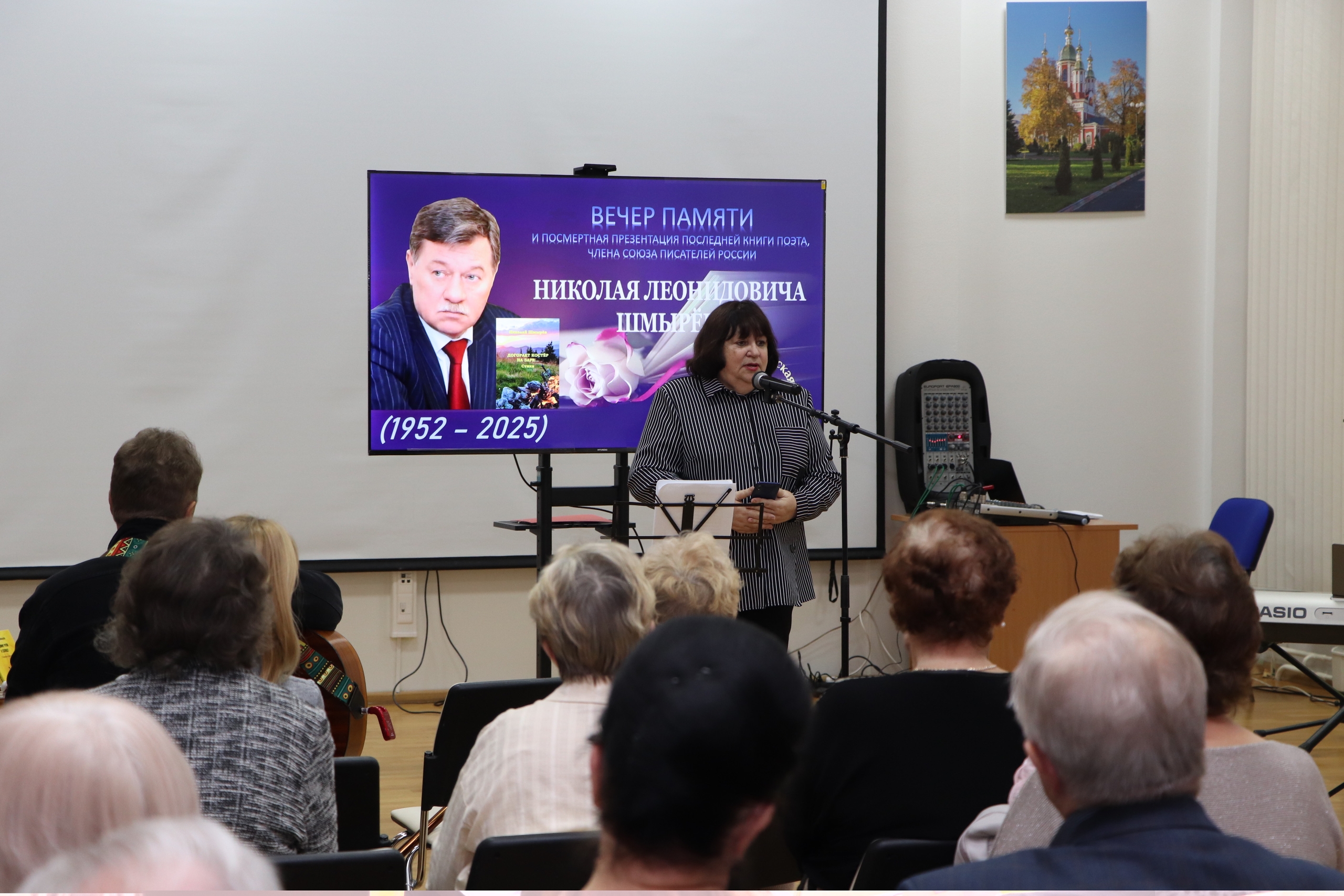 Вечер памяти поэта Николая Леонидовича Шмырёва, включивший посмертную презентацию его книги «Догорает костёр за заре…», прошёл 5 ноября 2025 года в краеведческом зале Тамбовской областной библиотеки им. А. С. Пушкина.