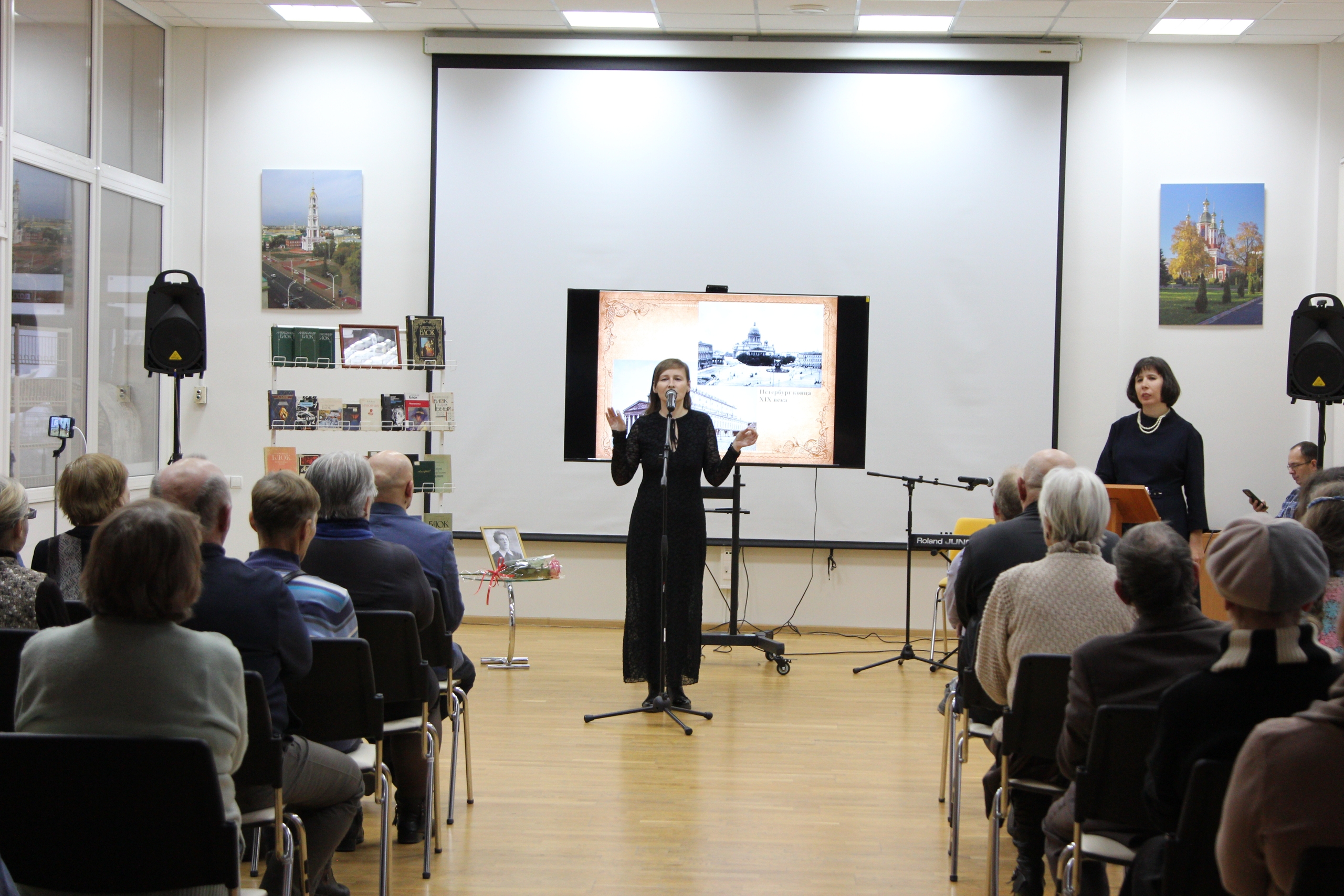 Поэты, члены Союза писателей России Елена Луканкина, Мария Знобищева и Станислав Черняк прочитали на вечере авторские произведения, посвящённые Петербургу, Серебряному веку и великому символисту. Завершил мероприятие видеоролик, созданный чтецом Павлом Севостьяновым по стихотворению Елены Луканкиной «Окно Блока».