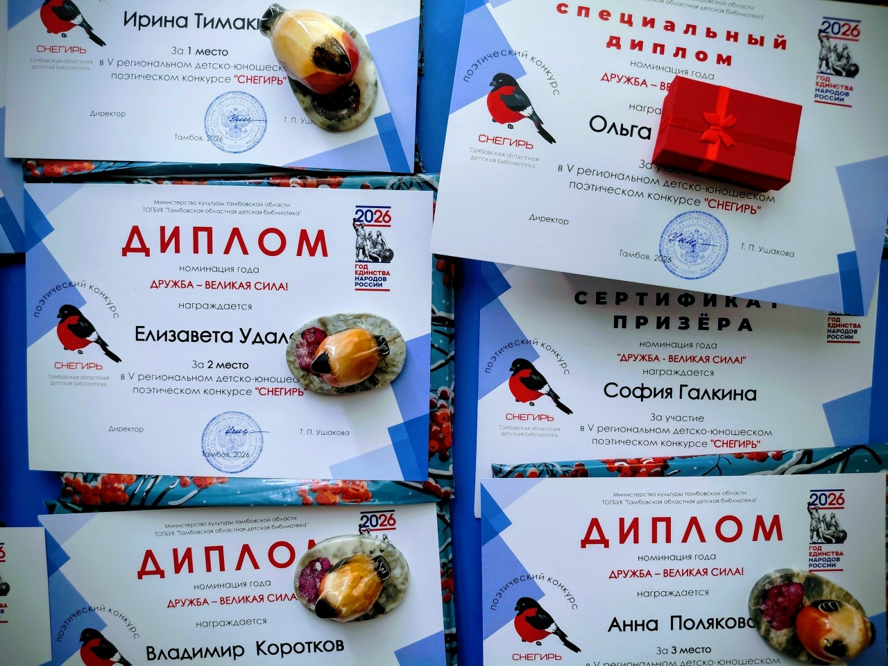 27 марта в Тамбовской областной детской библиотеке состоялось торжественное подведение итогов и награждение победителей V регионального детско-юношеского поэтического конкурса «Снегирь» в номинации «Дружба – великая сила».