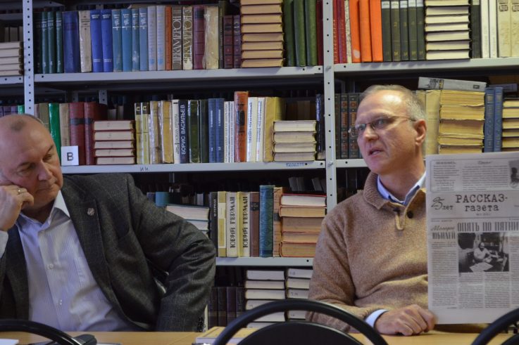 22 ноября на факультете филологии Мичуринского аграрного госуниверситета состоялась творческая встреча членов Союза писателей России – Юрия Мещерякова и Олега Алёшина, со студентами факультета под руководством профессора, доктора филологических наук Наталии Черниковой.