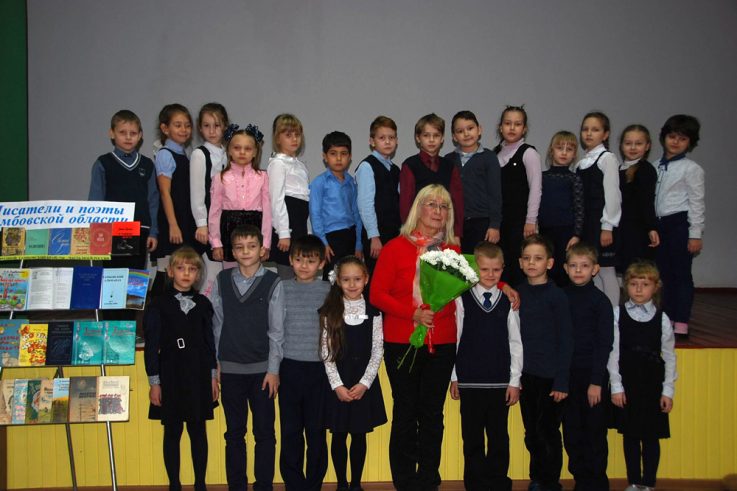 Второклассники Цнинской школы №1 Тамбовского района под руководством своих классных руководителей и педагога-библиотекаря собрались в актовом зале, чтобы познакомиться с творчеством поэтессы Татьяной Курбатовой, которую представила присутствующим педагог-библиотекарь Виктория Сайкина.