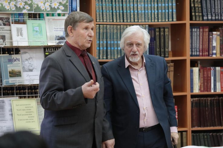 Главный библиотекарь Марина Шашлова подготовила презентацию к празднику поэта, где прозвучали песни композитора, заслуженного работника культуры Р.Ф. Ольги Ивановны Егоровой на слова Г. Шеховцова в исполнении Павла Егорова и Татьяны Яшиной.