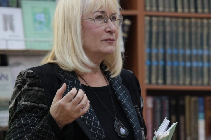 Заведующая информационно-библиографическим отделом МЦГБ Л.В. Третьякова сделала подробный обзор выставки «Поэт Геннадий Шеховцов». В конце прочитала своё любимое стихотворение поэта « Путеводная звезда».